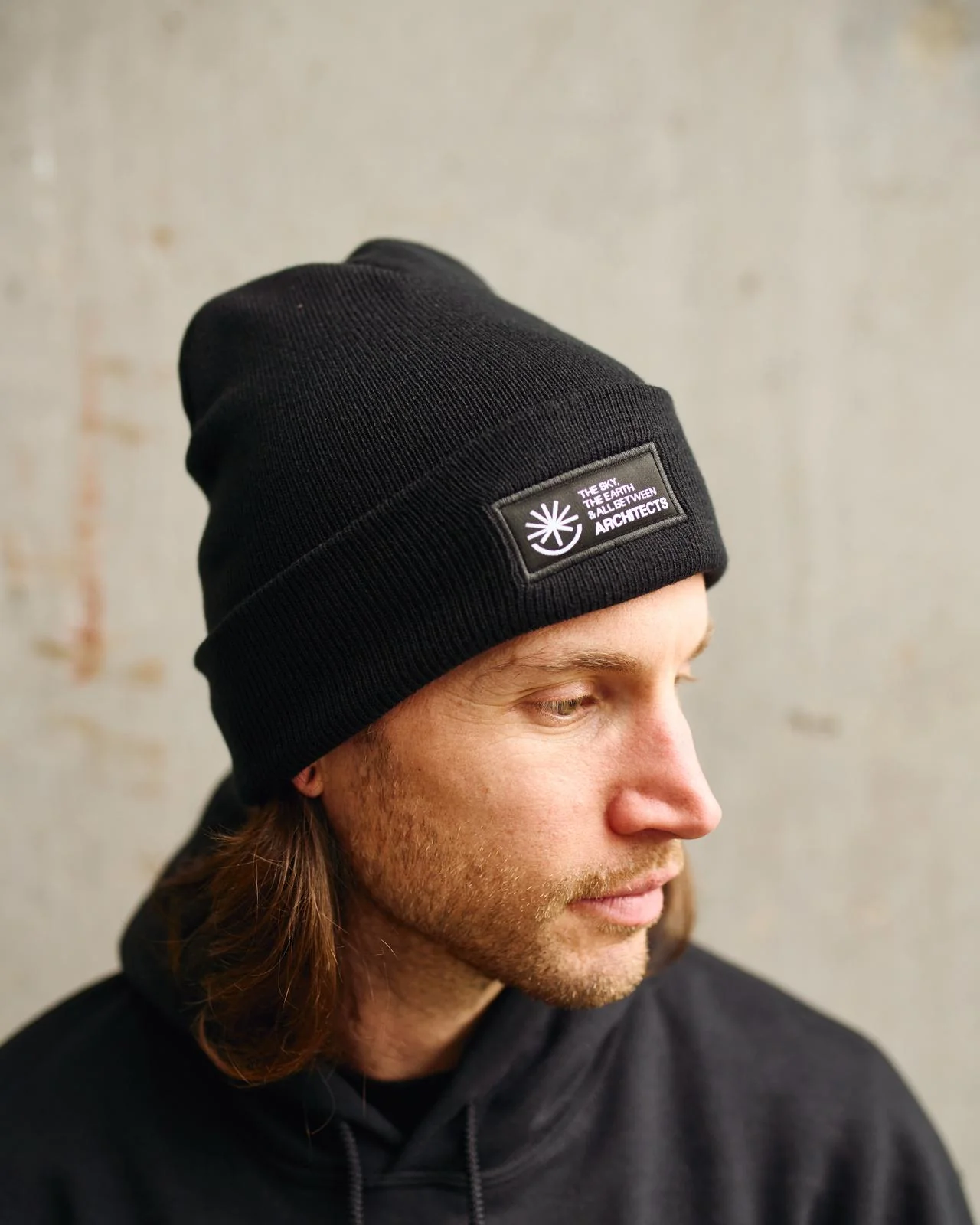 Architects - The Earth, The Sky & All Between text black beanie.
